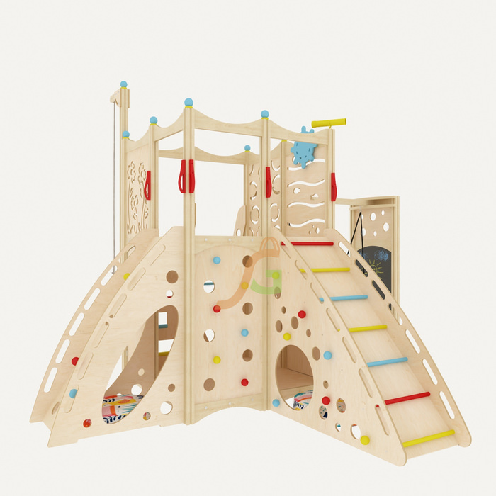 Конструкция изготовлена из фанеры берёзы толщиной 15 мм. Она прошла тщательную обработку, для длительной эксплуатации и сохранения эстетичности покрывается масляной пропиткой. Используемые средства не выделяют токсины. Дети будут с удовольствием проводить время в игровом домике, чувствуя себя прекрасно. Ведь для декорирования подобрано минимум оттенков, сохранена естественность материалов.