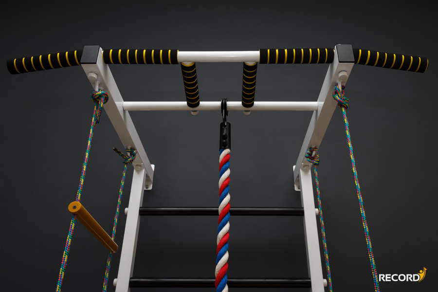 Универсальный съемный турник. Имеет 3 вида хватов - классический средний на ширине плеч, узкий параллельный и широкий хват. Вылет от стены 50 см позволяет не касаться шведской стенки при выполнении некоторых упражнениях.