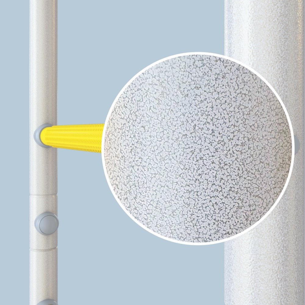 Конструкция выполнена из качественной стали, что обеспечивает надежность комплекса. Шведская стенка с турником выдерживает нагрузку до 100кг. Тренажер успешно прошел испытания с увеличенным до 200кг весом. Это дает возможность безопасно заниматься на шведской стенке даже взрослым. Навесное оборудование в комплекте шведской стенки выдерживает до 50кг, а скалолаз 80 кг.