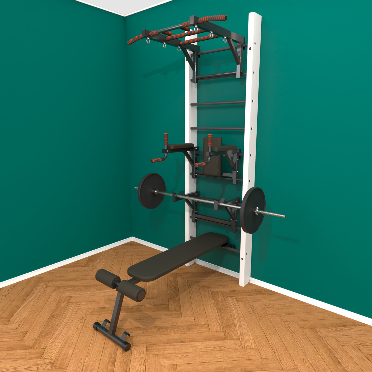 Брашированная шведская стенка "Кастерли" White ТБCШ (Черные ступени) в Волгограде