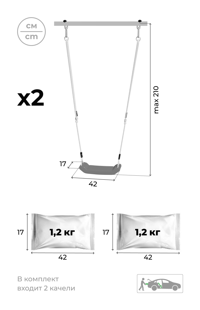 Высота качельной балки, см 205